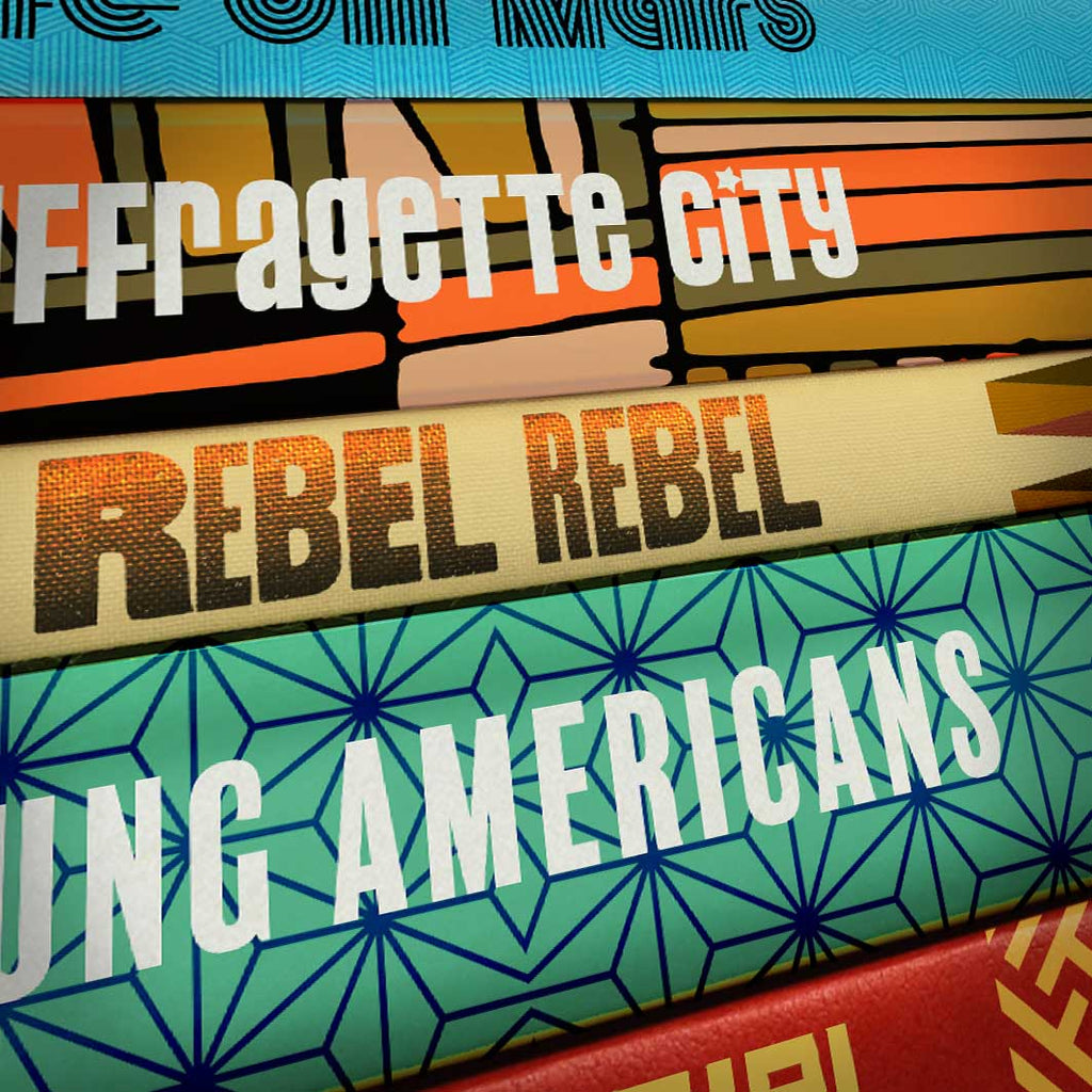 Bowie By The Book music poster print features some of the great songs written by the Thin White Duke, created as a set of book spines.