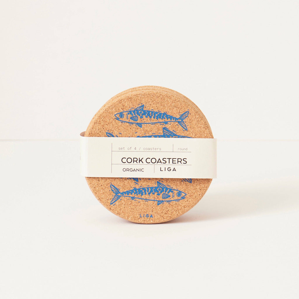 Organic cork coasters with simple contemporary designs. Inspired by nature, grown in Portugal, screen printed in Cornwall.