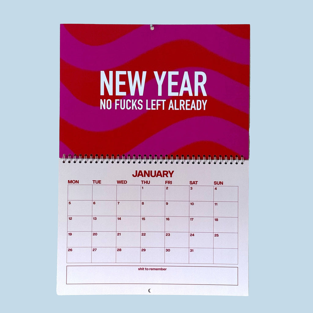 • A4 landscape wall calendar design with white wire binding and hanging hole 🎁 Why you need it: • The ultimate funny gift for friends, family, or co-workers who swear too much • Perfect for Christmas, Secret Santa, birthdays, or just yourself • Adds a daily dose of humour to your wall while still being practical ✨ Whether you’re planning world domination, work deadlines, or just when to buy more wine, this profanity-packed calendar has you covered.